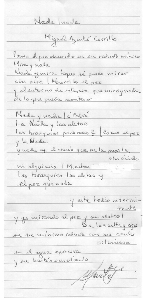 y yo mirando al pez y su aleteo | Da la vuelta y sigue en su mínimo reducto con su canto silencioso