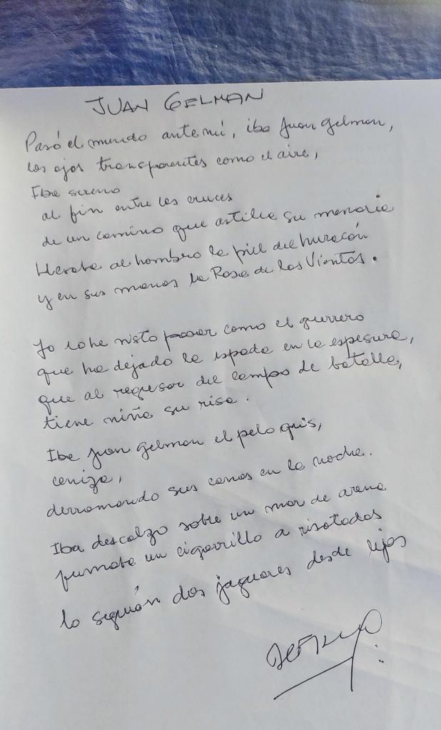Pasó el mundo ante mí, iba Juan Gelman,