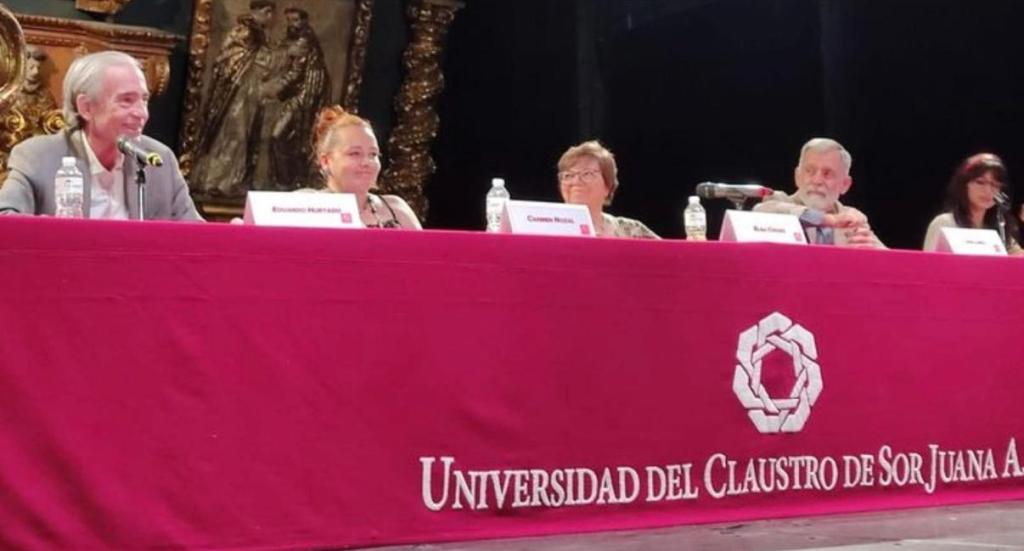 De izquierda a derecha, Eduardo Hurtado, Carmen Nozal, Elsa Cross, Josu Landa y Mar Gutiérrez (en representación de Verónica Valkow), en el marco del I Encuentro de Poetas Iberoamericanos sede México, dirigido por Carmen Nozal.